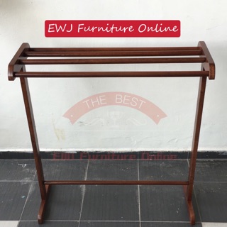 Wooden towel rack rak tuala kayu cloths hanger solid wood . Sumber Gambar : shopee.com.my